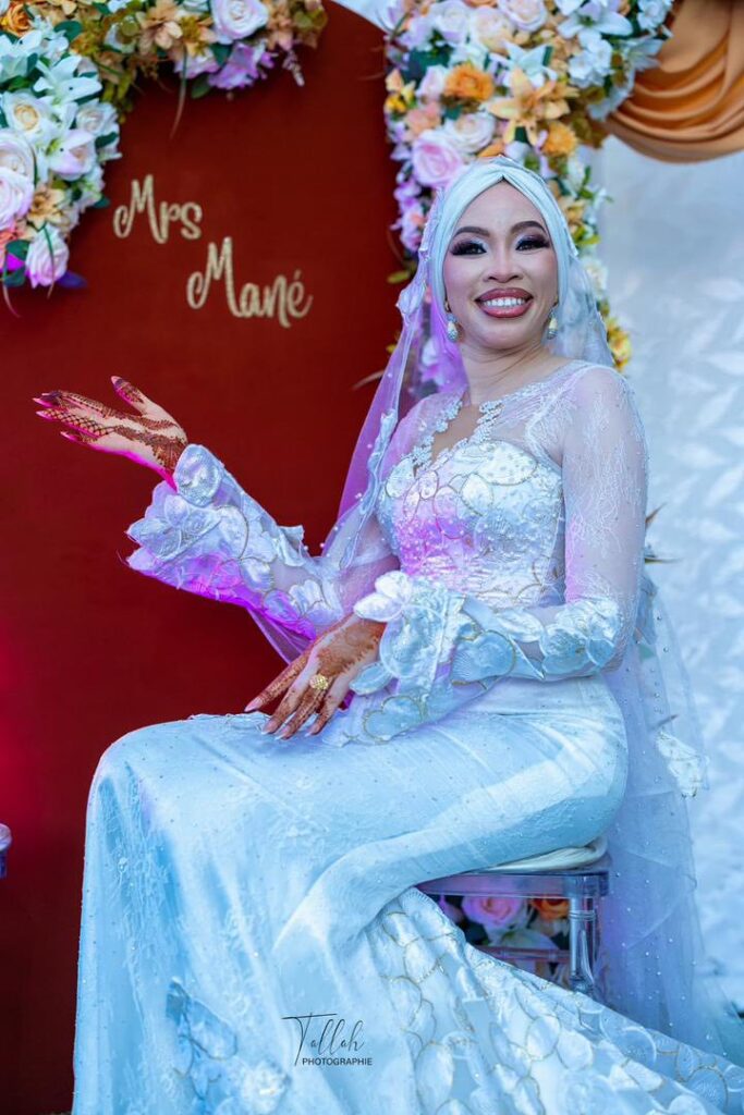 Vêtue d’une magnifique robe de mariée à corset, Maah affiche son plus beau sourire, et tout cela par amour. Madame Mané est un titre qui lui va à merveille après avoir accepté la main de son époux. Maah est mariée, et elle a célébré ce jour important de sa vie entourée de sa famille et de ses proches.