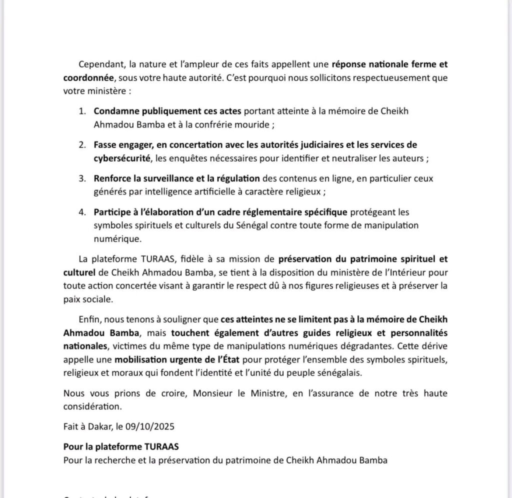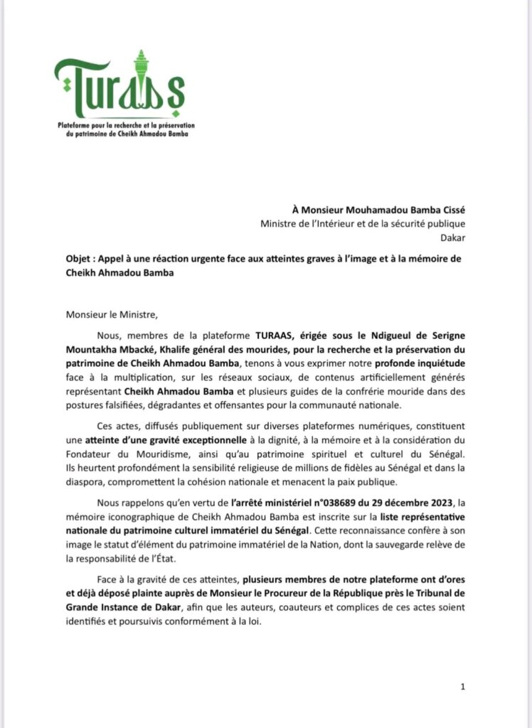 Turaas tient à temoin l’opinion publique nationale et internationale sur la continuité des dégradations de l’image de Cheikh Ahmadou Bamba et de nos guides spirituels à travers la diffusion de vidéos et images offensantes sur les réseaux sociaux.