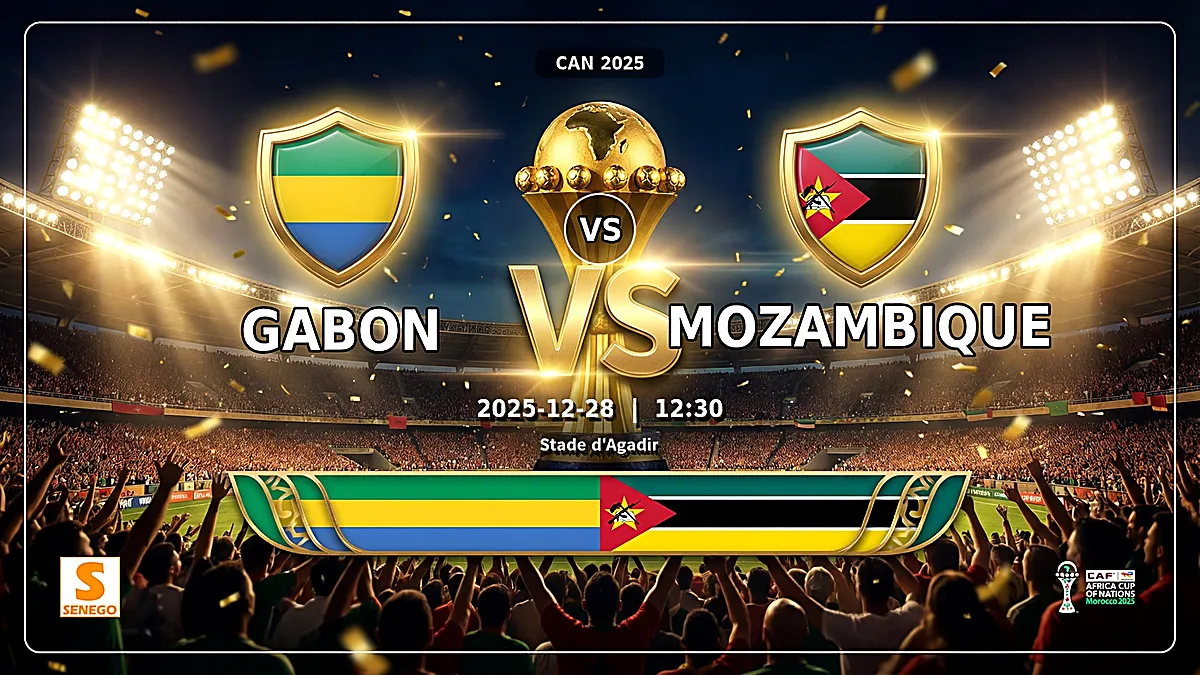 Ce samedi 28 décembre 2025, le Gabon affronte le Mozambique dans le cadre de la phase de groupes de la Coupe d’Afrique des Nations organisée au Maroc. Cette rencontre du Groupe F se tiendra au Stade d’Agadir avec un coup d’envoi prévu à 12h30. Les hommes de Thierry Dieudonné Mouyouma font face à la sélection dirigée par Chiquinho Conde pour un duel important dans la compétition.