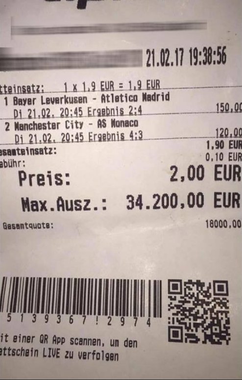 Soit le score du match avant que l’international allemand ne marque à la 82e minute. Pour une mise de 2€, le parieur a failli gagner 34 200 euros. «Désolé pour ce malheureux gars», s’est excusé Sané. Le parieur n’a toutefois pas eu le temps de vibrer : à la 82e minute, le score était toujours de 2-3 entre le Bayer et l’Atlético.