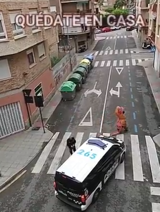 Le département de police de Murcie a publié des images de la personne non identifiée dans la tenue T-rex arrêtée par des agents qui appliquent les restrictions strictes du gouvernement.