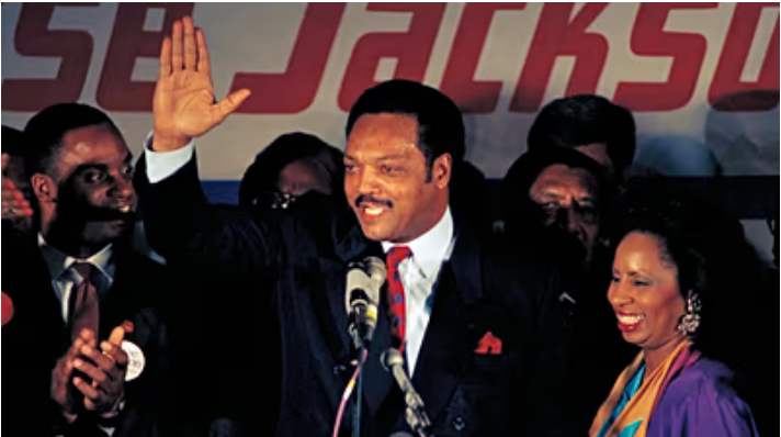 Dans les années 1980, il marque l’histoire en se lançant dans la course à l’investiture démocrate pour la présidentielle, mobilisant des millions d’électeurs issus des classes populaires et des minorités. Sa candidature ouvre la voie à une nouvelle ère de diversité dans la vie politique américaine.