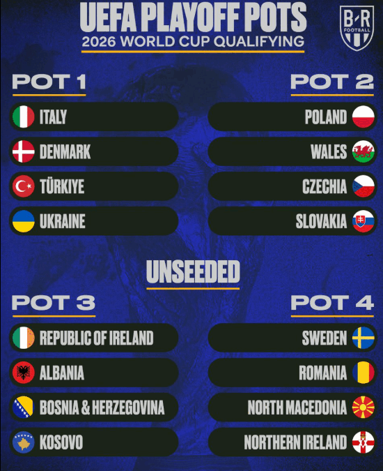 Pologne, Pays de Galles, République tchèque et Slovaquie tenteront de prendre le dessus sur 🇮🇪 République d’Irlande, Albanie, 🇧🇦 Bosnie-Herzégovine et Kosovo.