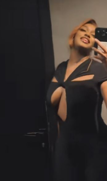 L’actrice embrase la toile avec une sortie fracassante. Fabintou ose une silhouette extrême et un détail qui fait réagir : une tenue sans soutien-gorge, assumée sans détour. Plus exubérante, plus audacieuse, plus provocatrice.