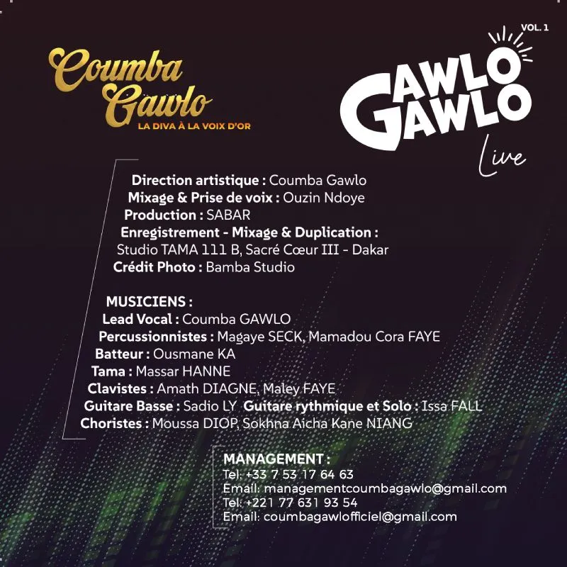 Pour accompagner cette fresque musicale, la « Diva à la voix d’or » s’est entourée de musiciens expérimentés. L’équipe compte notamment Magaye Seck et Mamadou Cora Faye aux percussions, Ousmane Kâ à la batterie, Massar Hanne au tama, ainsi qu’Issa Fall à la guitare. Alors qu’une séance de dédicace est annoncée prochainement, l’artiste a d’ores et déjà fixé rendez-vous à son public pour le « Bal des Gawlo Gawlo », prévu le samedi 31 janvier 2026 au CICES.