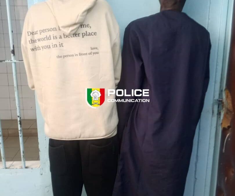 L’opération est intervenue après l’alerte donnée par un agent de police, informé par des riverains qu’une foule en colère s’apprêtait à lyncher les suspects. Arrivé sur les lieux, le policier est parvenu à extraire les deux individus de la vindicte populaire avant de les conduire au siège du service pour leur sécurité et les besoins de l’enquête.