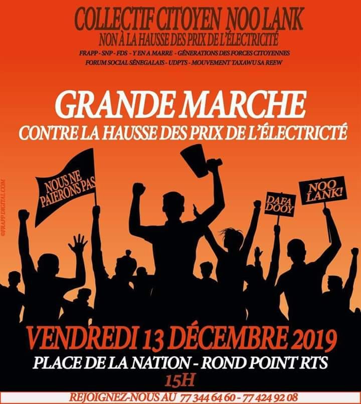 Une nouvelle plateforme contre l’augmentation du prix l’électricité vient de voir le jour : «ÑO LANK» (Littéralement : nous refusons). Ses membres prévoient déjà une manifestation, vendredi prochain, entre la Place de la Nation et le rond-point de la RTS.