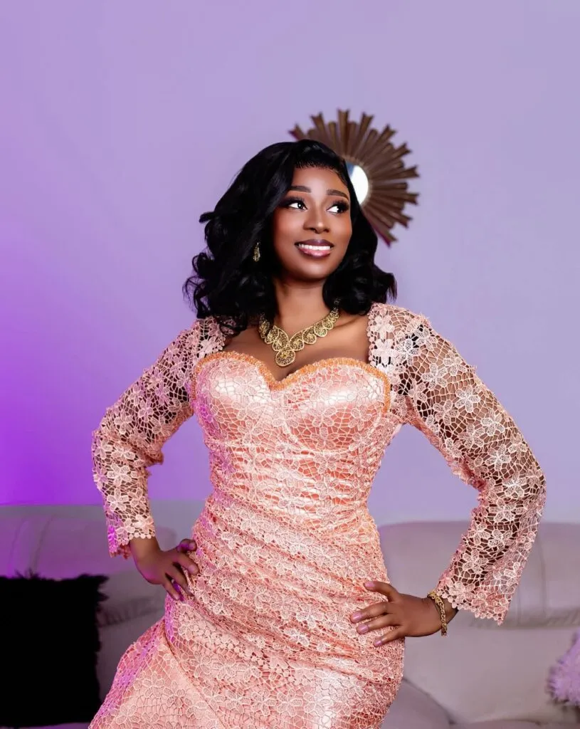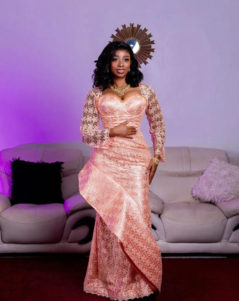 Comme l’indiquent nos confrères de Kawtef, l’interprète est apparue vêtue d’une création en dentelle aux tons pêche. Cette tenue met en valeur un savoir-faire artisanal précis, intégrant une touche de haute couture. L’ensemble visuel est complété par des parures dorées majestueuses, soulignant la volonté de l’artiste d’allier l’authenticité culturelle à une sophistication contemporaine.