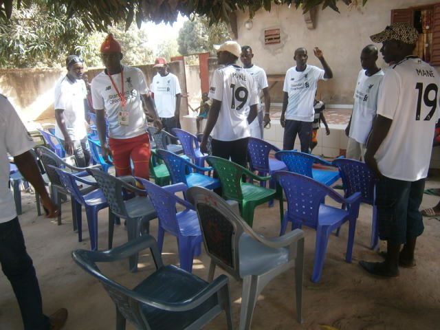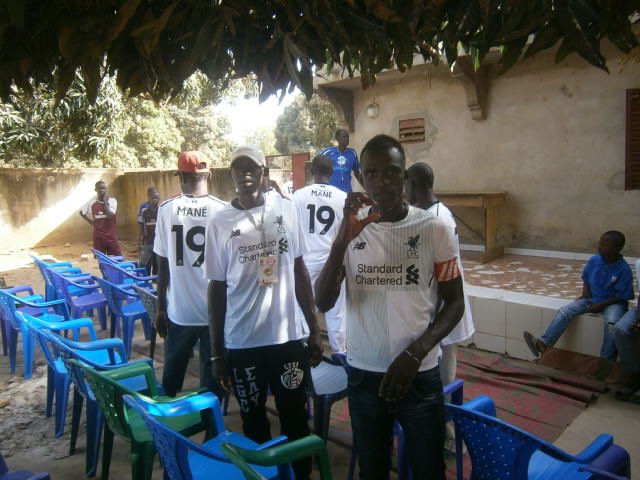 Tous habillés en maillot blanc et le nom de Sadio Mané floqué sur le dos, les habitants de Bambali (Village natal de Sadio Mané), suivent attentivement la finale de la Ligue des Champions entre le Real Madrid et Liverpool.