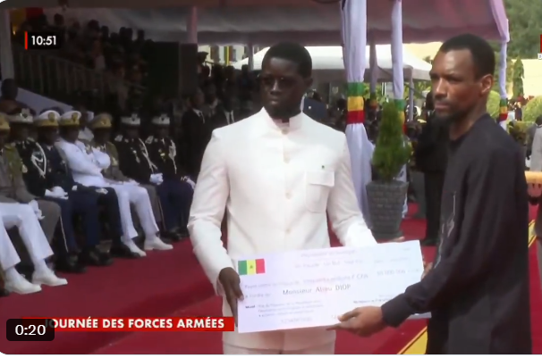 Le Président de la République, Bassirou Diomaye Faye, a procédé lundi, au Camp Dial Diop, à la remise du Prix spécial pour l’innovation technologique à vocation militaire, une distinction visant à encourager la recherche et la créativité au sein des forces armées. La cérémonie s’est tenue dans le cadre de la Journée des Forces Armées Sénégalaises.