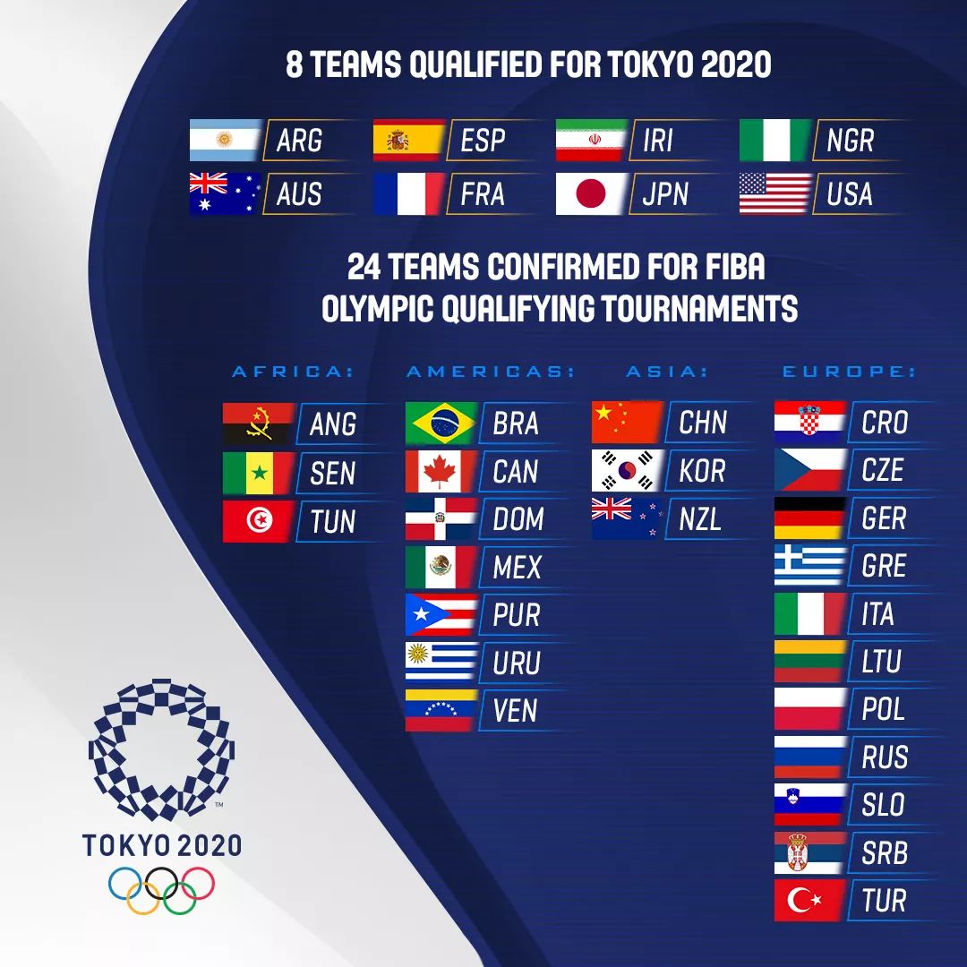 8 teams qualified directly to @Tokyo2020, the 4 remaining places in the 12-team field are reserved for the winners of each of the 4 @FIBA Olympic Qualifying Tournaments.@AngolanBasket 🇦🇴 & @FSBBOFFICIEL 🇸🇳 join @ftbb_tunisie 🇹🇳 in the OQT.#Tokyo2020 #Olympic #CoachMills pic.twitter.com/Y5EHMiO7zy