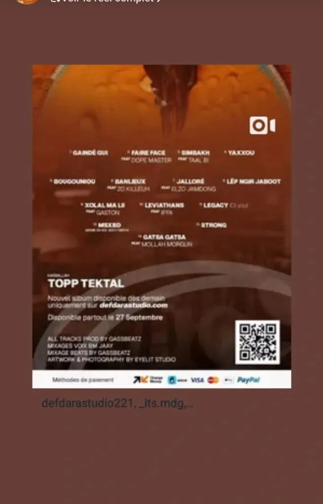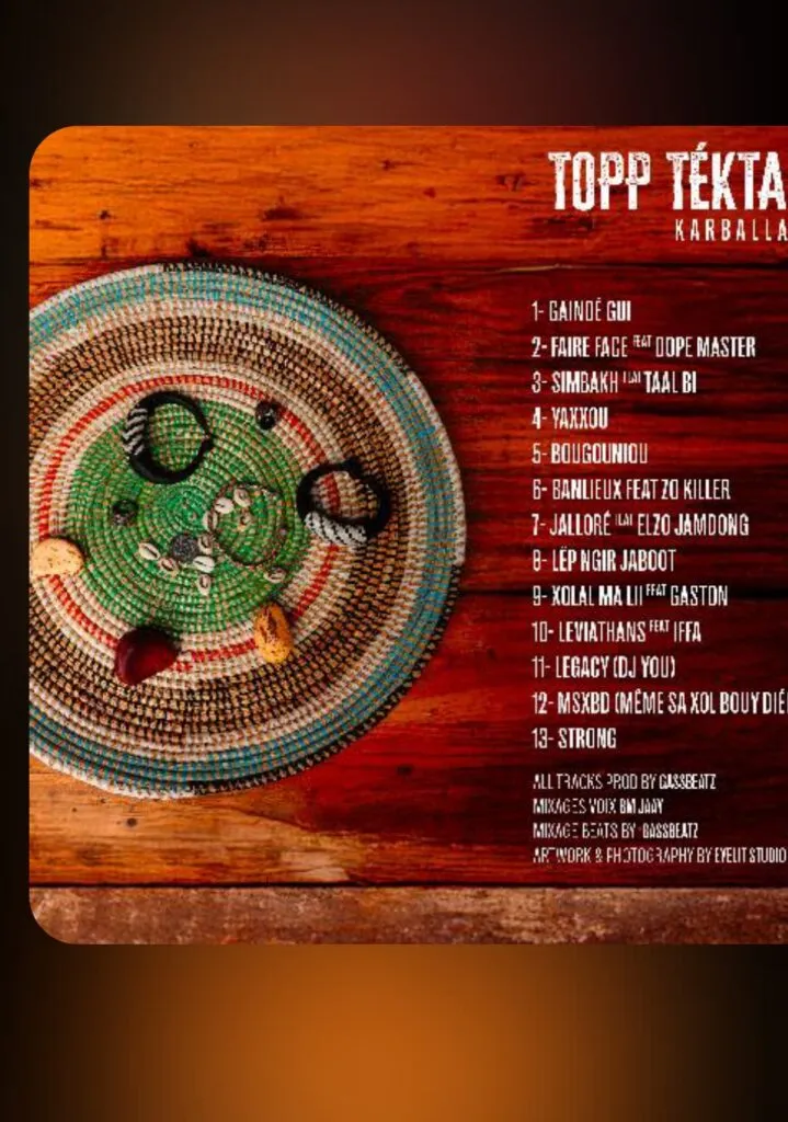 Le rappeur sénégalais Karballah est de retour sur la scène musicale avec un nouvel album intitulé « Topp Téktal ». Composé de 14 titres, cet opus est le fruit de collaborations avec plusieurs artistes, dont Dope Master, Taal Bi, Zo Killeuh, Elzo Jamdong, Gaston, Iffa, DJ You et Mollah Morgun. L’album, entièrement produit par GassBeatz et mixé par BM Jaay, aborde des thèmes variés, allant de l’engagement social au vécu des banlieues, en passant par une ouverture musicale affirmée.