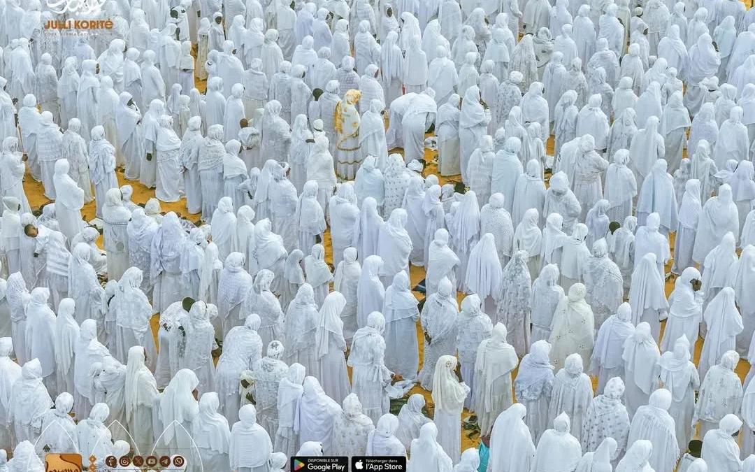 Selon les informations rapportées par Kawtef, cette prière collective s’est distinguée par une organisation soumise à une discipline rigoureuse. L’aspect le plus saillant de ce rassemblement repose sur une consigne visuelle précise, massivement respectée par les participants présents sur le sable de Diamalaye.