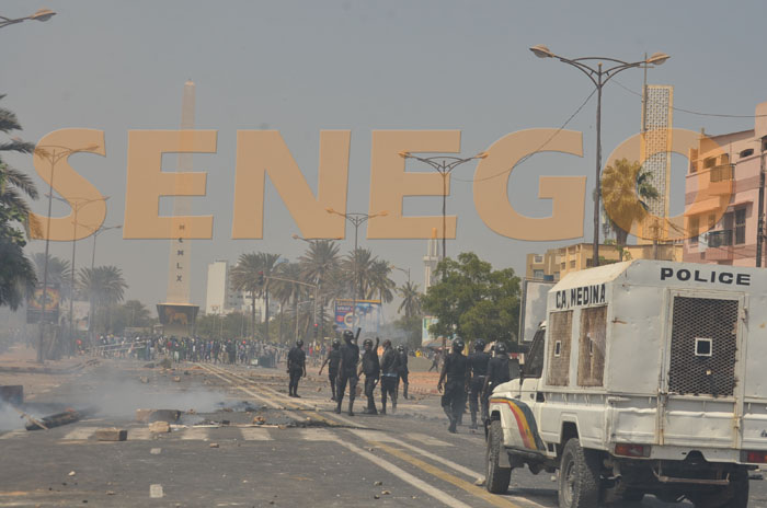 Les manifestants ont pris d’assaut la place de l’obélisque suite à l’arrestation de Ousmane Saonko par les éléments du Groupe d’intervention de la Gendarmerie nationale (GIGN).