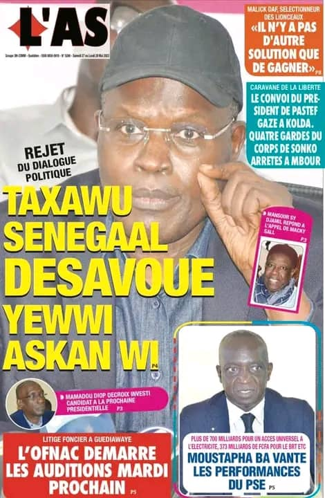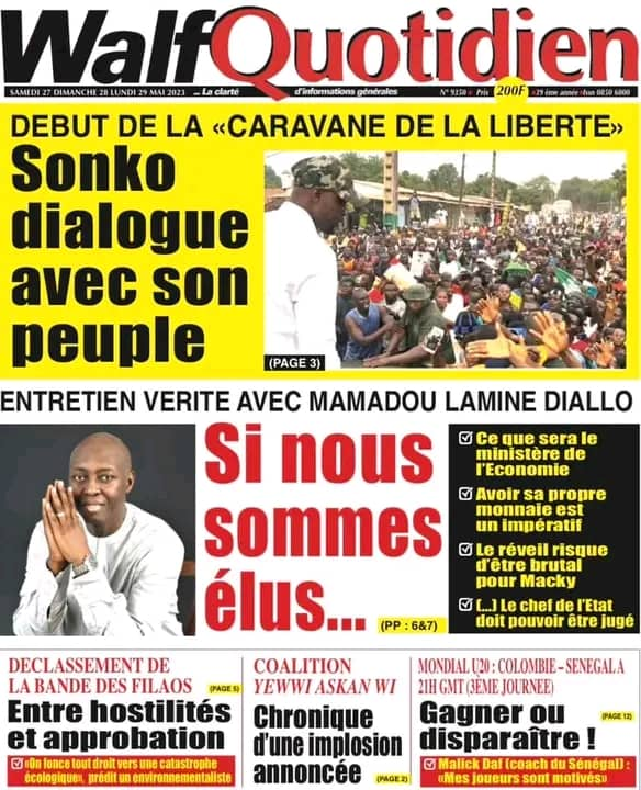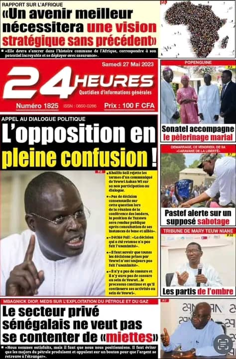 Parcourez sur senego la Une des journaux de ce samedi 27 mai 2023.