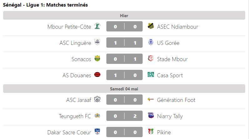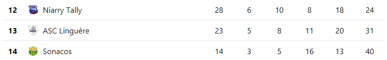 Les Gabelous 4e, n’ont plus perdu depuis la 19e journée. Et sur 5 journées Ibrahima Sow et ses coéquipiers ont enregistré 4 victoires et un match nul. En bas de classement, les clubs de Mbour ont officialisé leur maintien et le Niarry Tally et l’Us Goree sont à une victoire pour plonger carrément La Linguere à la Ligue 2.