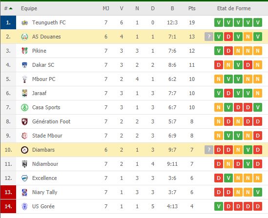 Teungueth Fc solide leader. US Gorée respire mieux et Niarry Tally n’y arrive toujours pas. Bilan de la 7e journée de la Ligue 1 sénégalaise.