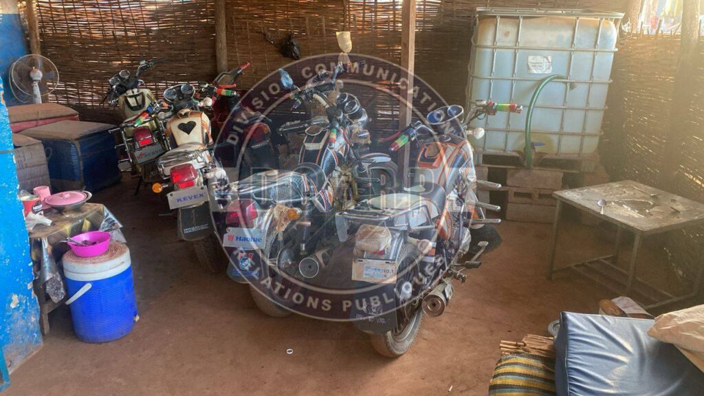 L’opération, menée entre 11 heures et 15 heures, s’inscrit dans le cadre de la lutte contre l’exploitation illégale des ressources aurifères. Elle a permis l’interpellation de seize (16) individus et la saisie d’un important lot de matériel, composé notamment de dix groupes électrogènes, dix marteaux piqueurs, neuf tricycles “piki-paka”, six motos et sept téléphones portables.