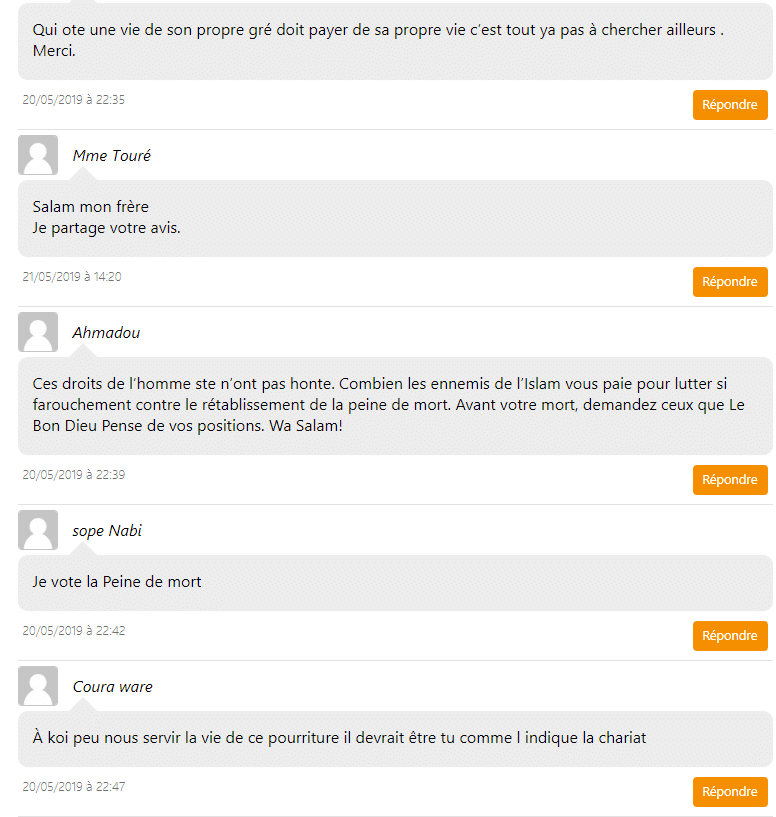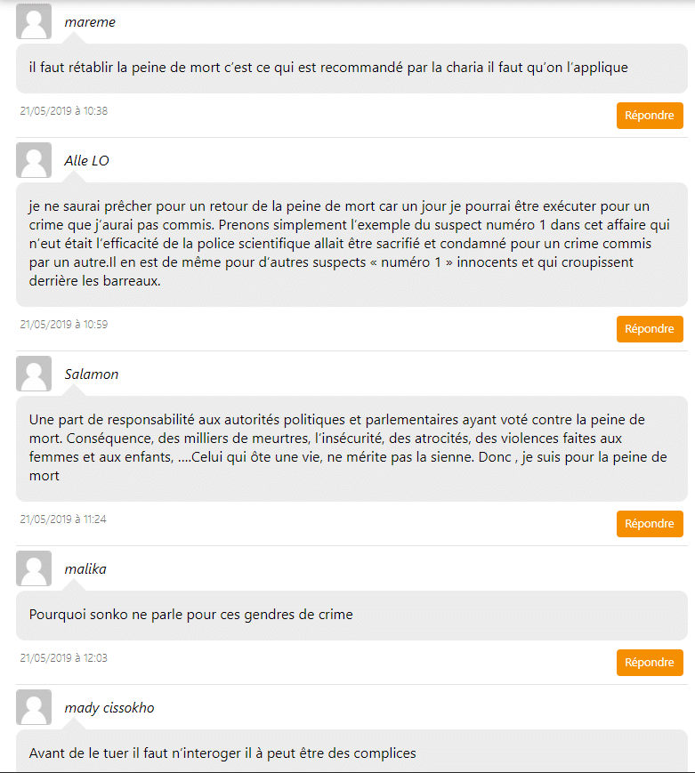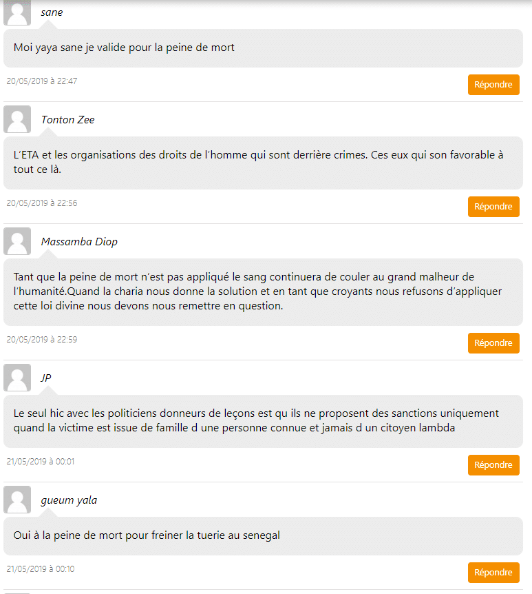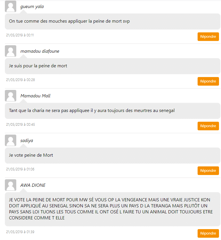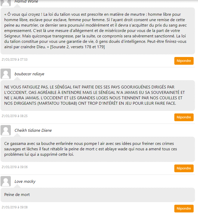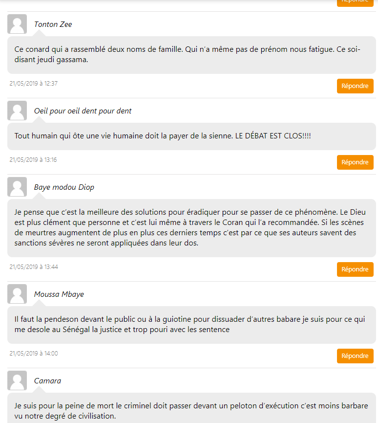 Pour ou contre la Peine de Mort ? le débat est ouvert aux internautes… C’est en ces termes que Senego s’étaient adressés à ses abonnés sollicitant leurs avis. Les commentaires laissent voir que les Sénégalais, majoritairement veulent l’application de la peine de mort.