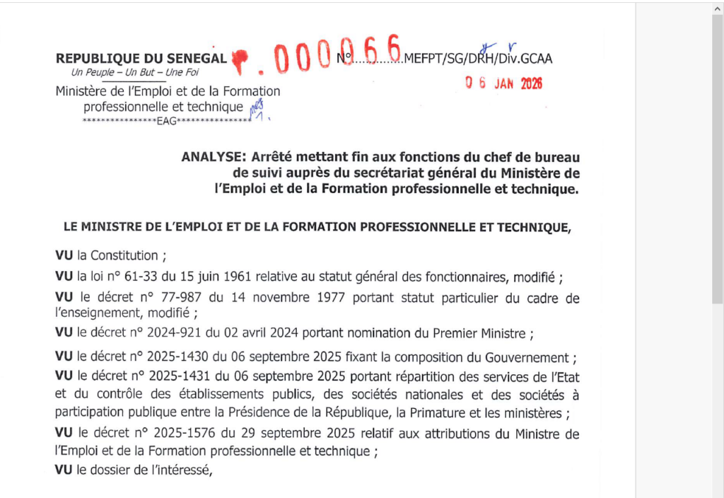 En dernière instance, Mohamed Mbow a affirmé son engagement : « Pour ma part, je demeure un agent de l’État, fidèle à mes obligations professionnelles, et un citoyen libre, fidèle à ses convictions. Je continuerai à assumer les deux, dans la dignité, la légalité et la constance ».