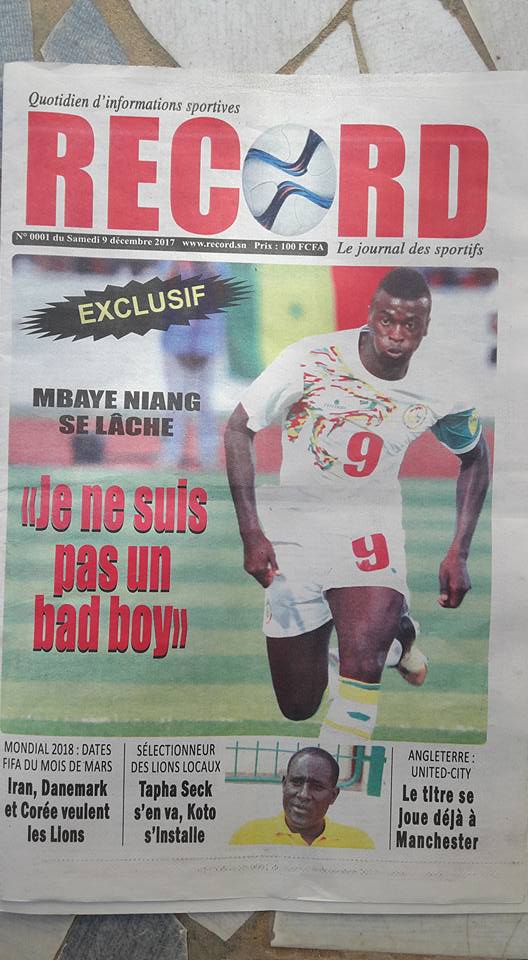Le journal sportif Record a en outre dans sa Une livré une interview exclusive avec Mbaye Niang le néo Lion qui argue qu’il n’est pas un « Bad Boy ». Il a aussi informé sur le départ à la tête de la sélection locale de Moustapha Seck, remplacé par Joseph Koto.