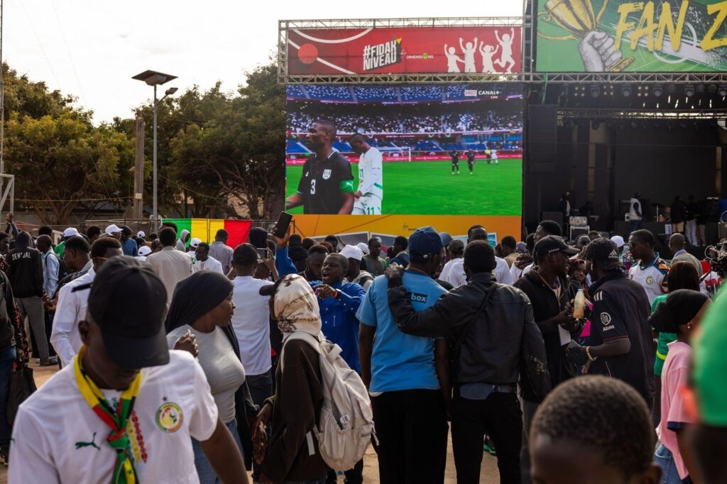 Fan Zone – FIDAK (CICES) : grand écran, animations et ambiance 100% supporters pour suivre les matchs des Lions de la Téranga. Ici, on vient vivre cette célébration du football africain en mode fan zone : chants, émotions, célébrations, animations… comme au stade.