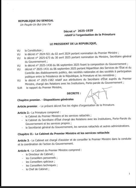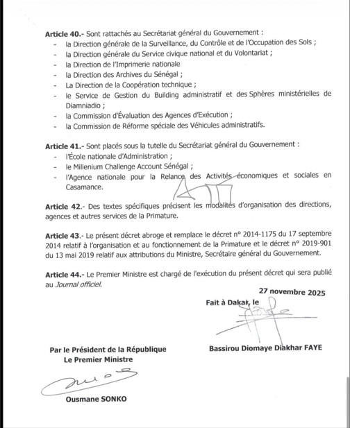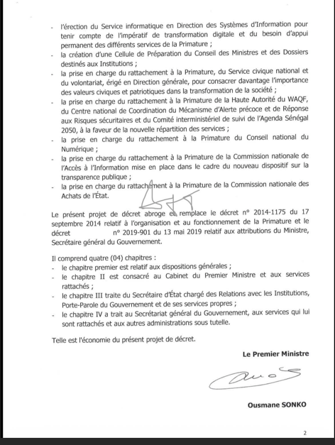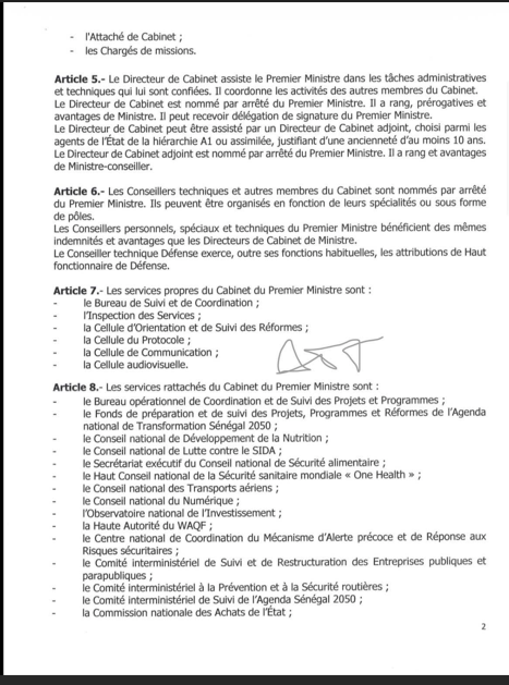 Cette réforme marque un tournant dans l’organisation de la Primature et permettra d’améliorer la conduite des politiques publiques pour un Sénégal souverain, juste et prospère.