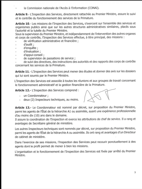 Inspection et ressources humaines : création d’une instance d’inspection pour évaluer les services internes et érection d’une Division des Ressources humaines en Direction pour mieux gérer le capital humain de la Primature.