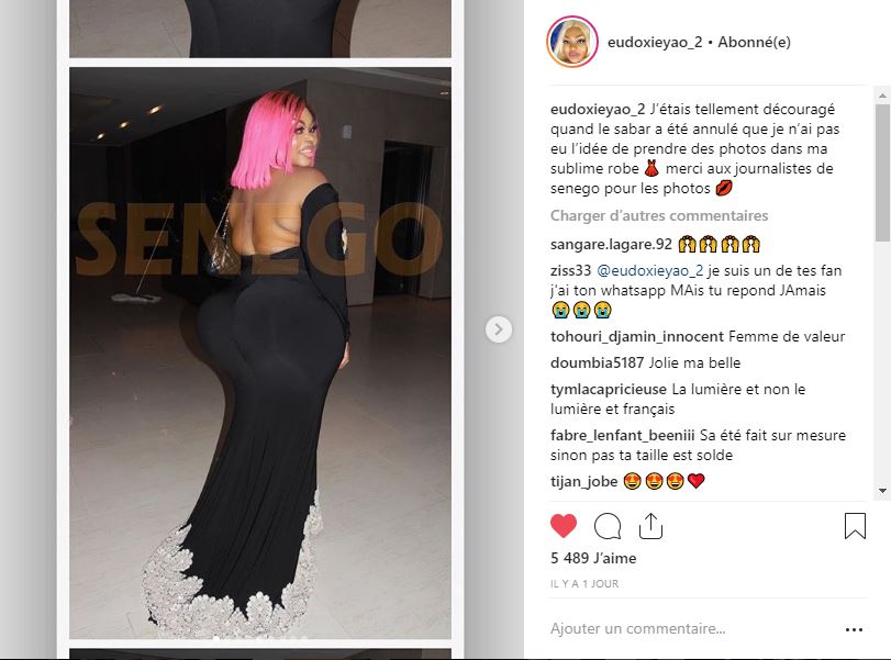 Eudoxie Yao a cependant posté sur son compte Instagram un message où elle remercie les journalistes de Senego de l’avoir photographiée avec sa belle robe.