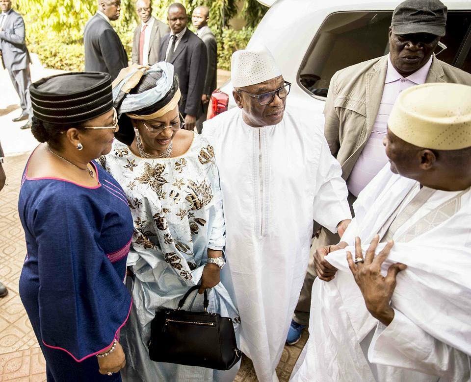 IBK, ATT et sa famille sont descendus de l’avion présidentiel vers 13h ce dimanche, une dizaine de minutes après son atterrissage à Bamako. Amadou Toumani Touré est sorti les bras levés et tout sourire, aux côtés de sa femme Lobo et de ses deux filles.