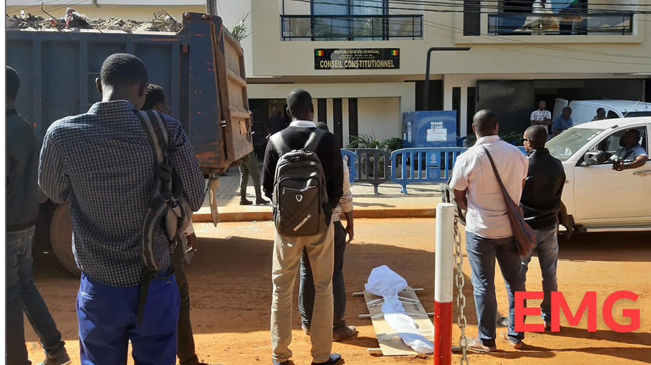Une civière en bois sur laquelle est étalée une toile blanche en forme d’une morte, prête à être enterrée. C’est l’image insolite mais dramatique à laquelle ont assisté ce matin les gendarmes postés à la devanture du Conseil constitutionnel. Selon nos informations, elle a été déposée sur les lieux par les jeunes de l’opposition.