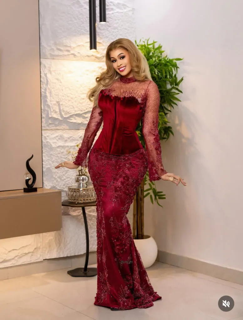 Sur les clichés mis en avant par le portail Kawtef, l’ex-Miss Sénégal s’affiche dans une longue robe rouge vif. La tenue se distingue particulièrement par une coupe sirène, ajustée de manière à mettre en valeur sa silhouette.