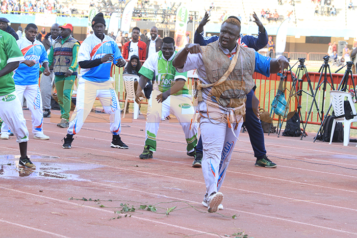 Papa Sow de l’écurie Fass executant sa chorégraphie Touss dans une forme pétillante.