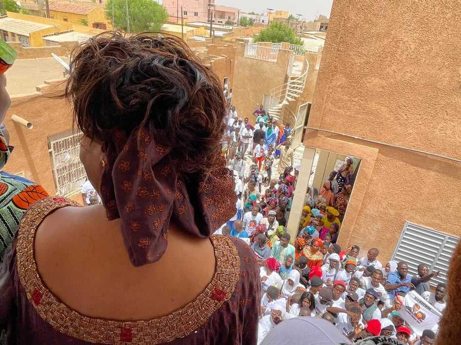 « Mr le président, soit remercié de ces grands efforts que vous avez effectués pour soutenir les populations de Podor. L’éclairage public, les ENO, la Der a accompagné les jeunes et les femmes de Podor, la maison du citoyen en état d’achèvement, sont tant de réalisations qui font que toute cette forte population est venue manifester son soutien et sa reconnaissance« , profite-t-elle de l’occasion pour l’inviter à satisfaire quelques demandes qui lui ont été soumis par les podorois : « Mr le président, Podor vous demande l’aménagement de son domaine agricole, le relèvement de son district sanitaire mais aussi la réhabilitation de ses bâtiments administratifs… »