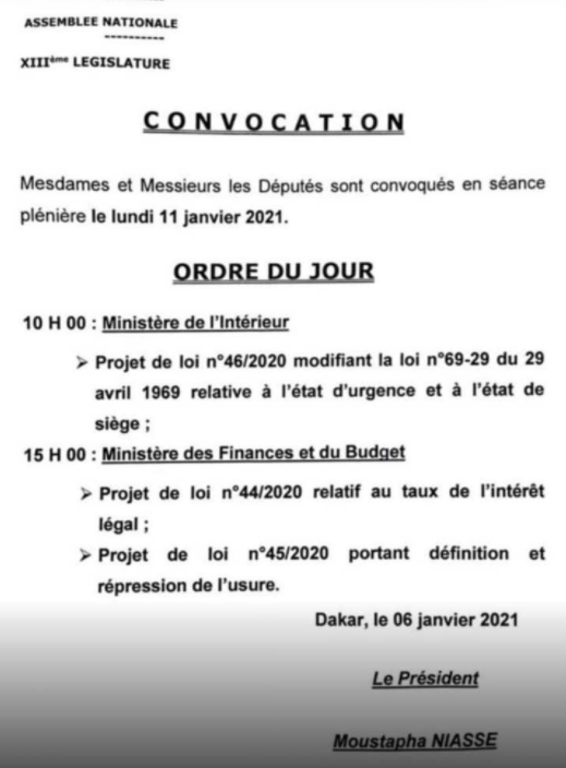 Les députés sont convoqués en plénière ce lundi 11 janvier 2021. L’objectif de cette rencontre, voter le projet de loi modifiant la loi relative à l’état d’urgence et à l’état de siège. Une loi, d’après Thierno Bocoum, avec un « précédent dangereux » pour la démocratie au Sénégal.