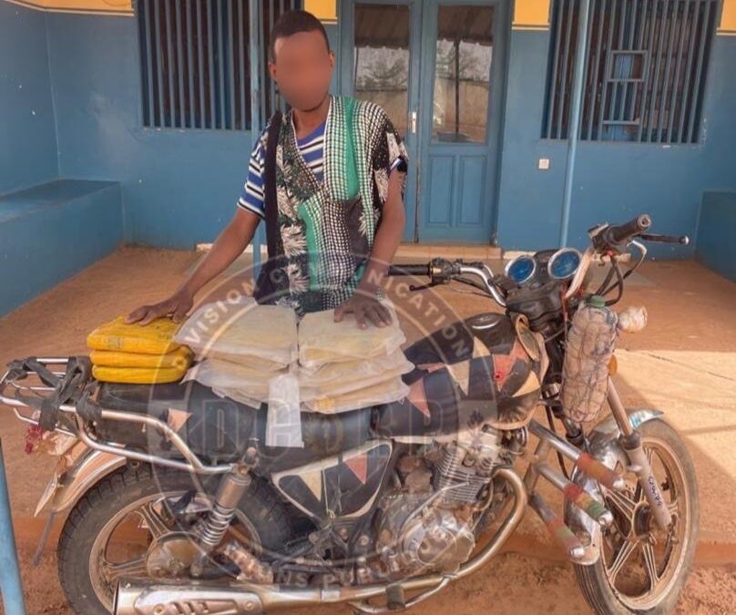 Les éléments déployés sur le terrain ont mené des investigations qui ont permis de localiser et d’interpeller le mis en cause. Lors de son arrestation, il était en possession d’une moto ainsi que des onze kilogrammes de chanvre indien saisis par les forces de sécurité.