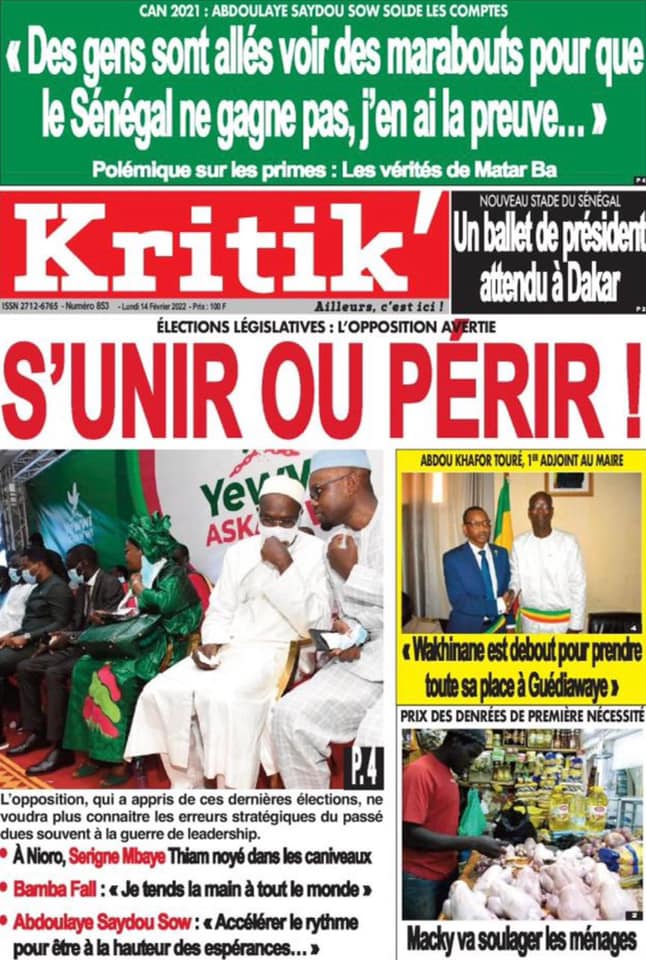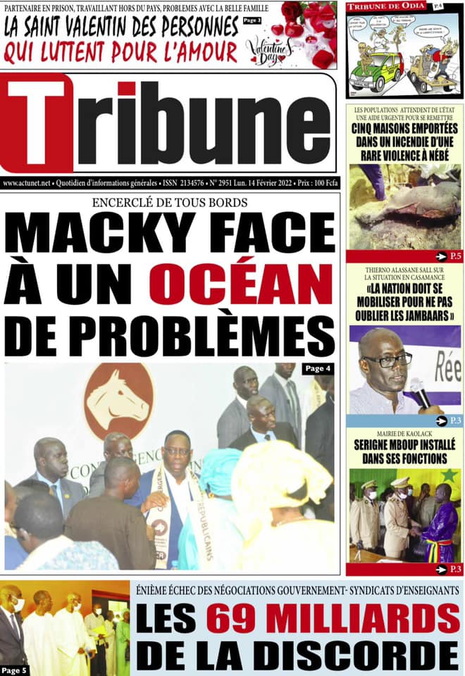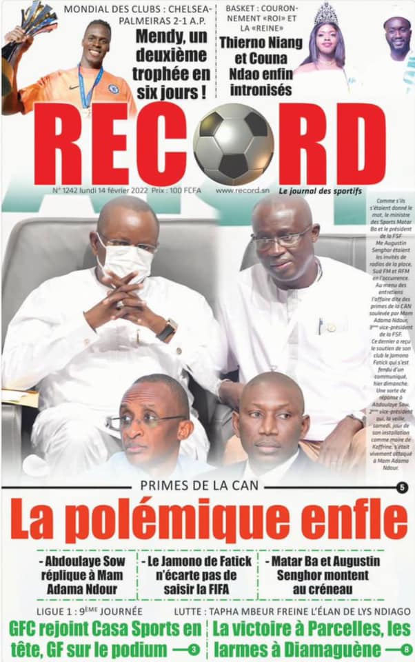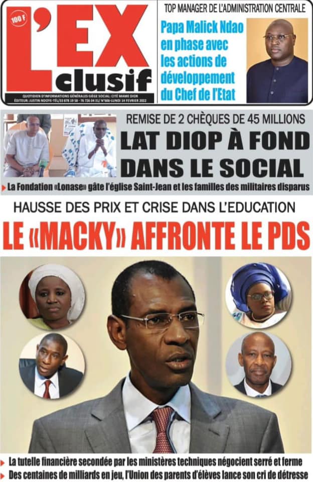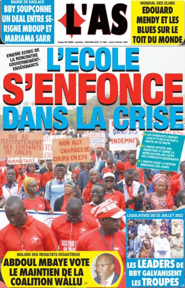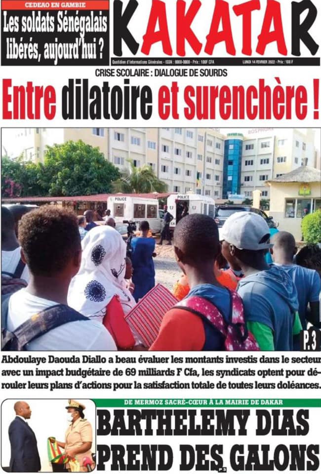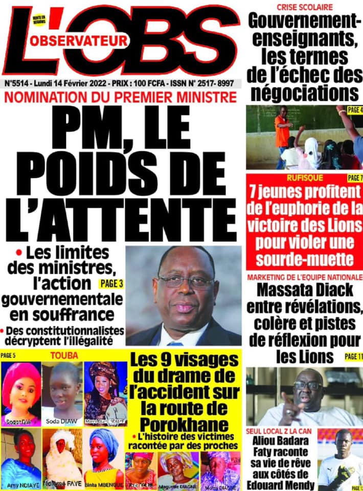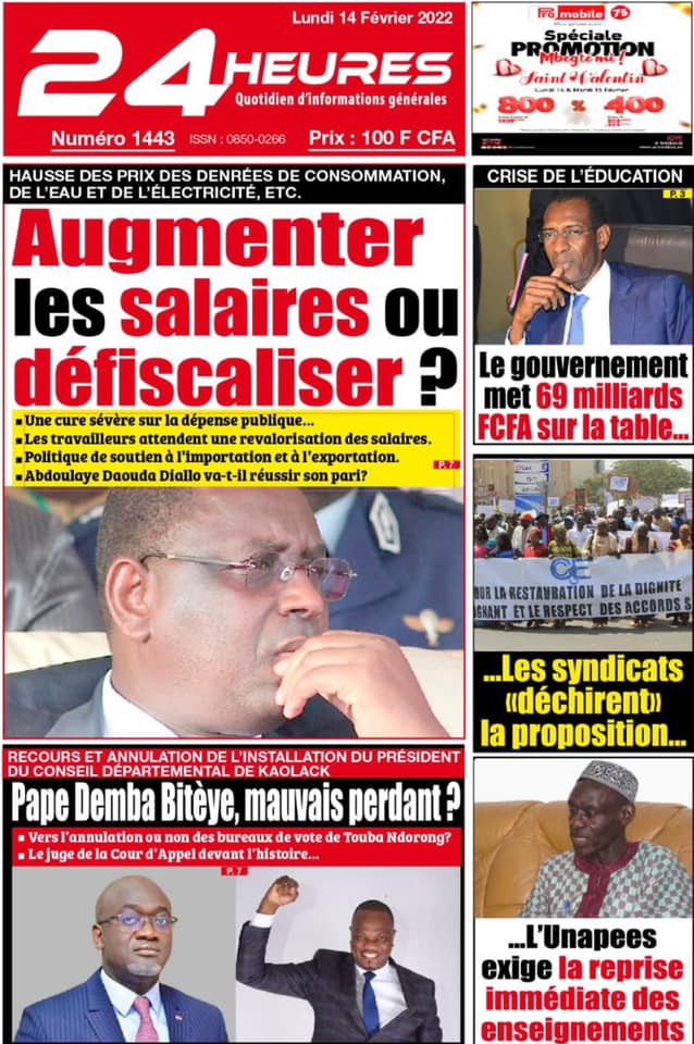 Les quotidiens s’époumonent à la Une ce lundi 14 février et sur les primes spéciales allouées aux Lions du football qui font désordre et sur cette masse d’argent déposée par le Gouvernement sur la table des enseignants toujours hors des classes.