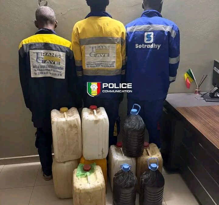 Selon la police, suite à une plainte déposée en septembre 2025 par la société TRANS GAYE pour des vols récurrents de gasoil dans sa gare de stationnement (Km 22), la Brigade de Recherche (BR) a mené des investigations de longue haleine.