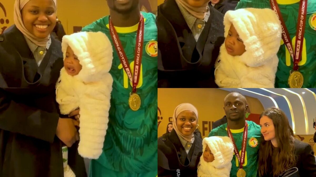 Sourire aux lèvres, Sadio affiche son bonheur après avoir remporté la CAN à deux reprises. Entouré de son épouse et de son bébé, médaille d’or au cou, il savoure pleinement ce nouveau sacre. Sadio Mané, très heureux, célèbre sans doute sa dernière CAN, annonçant sa retraite .