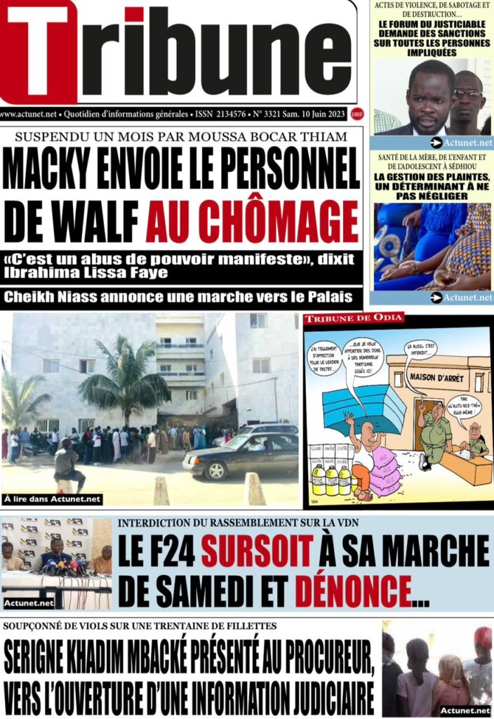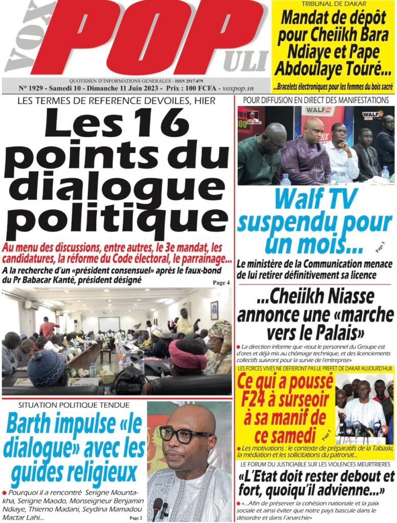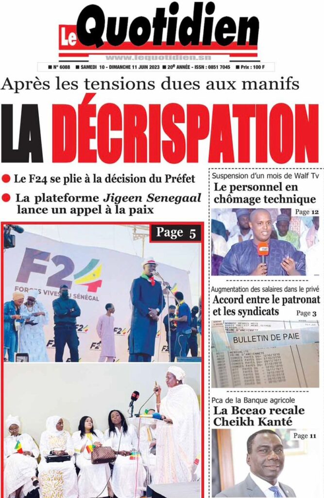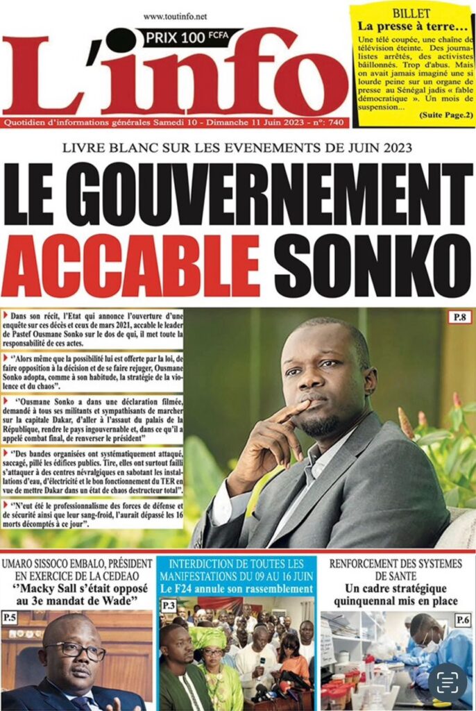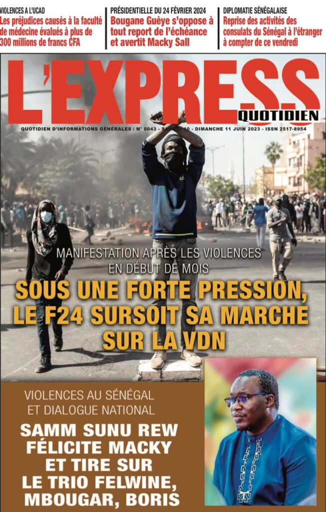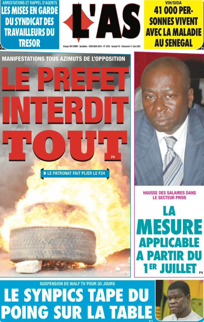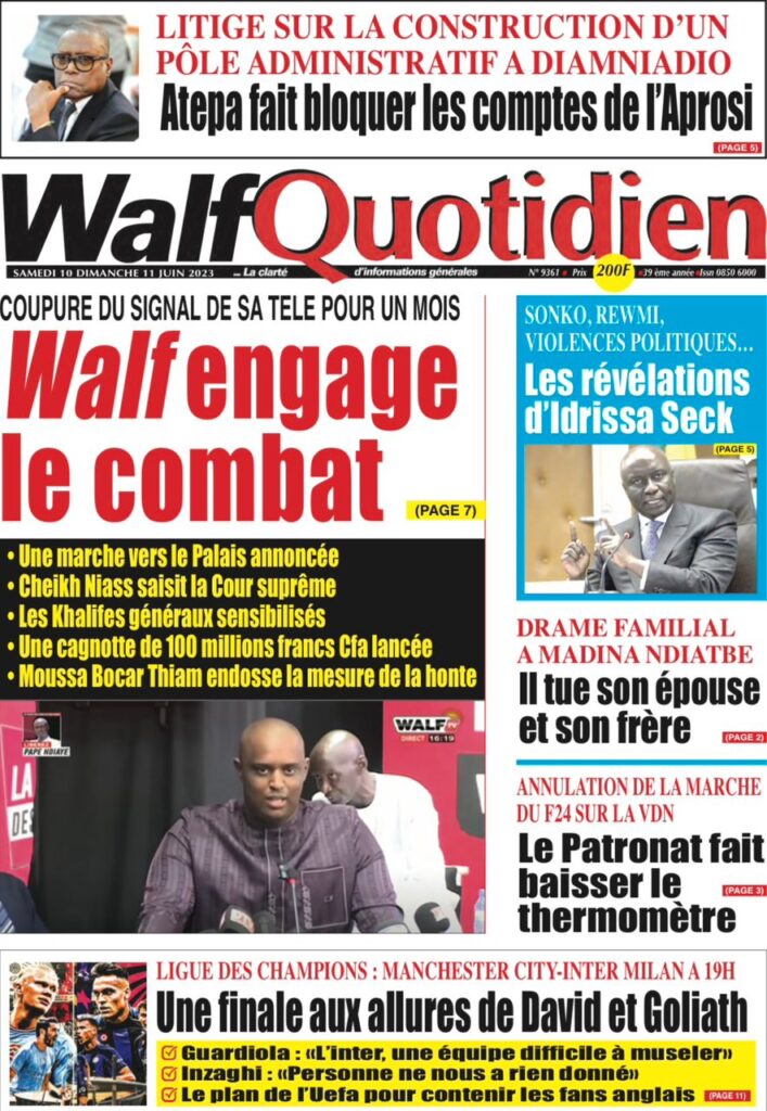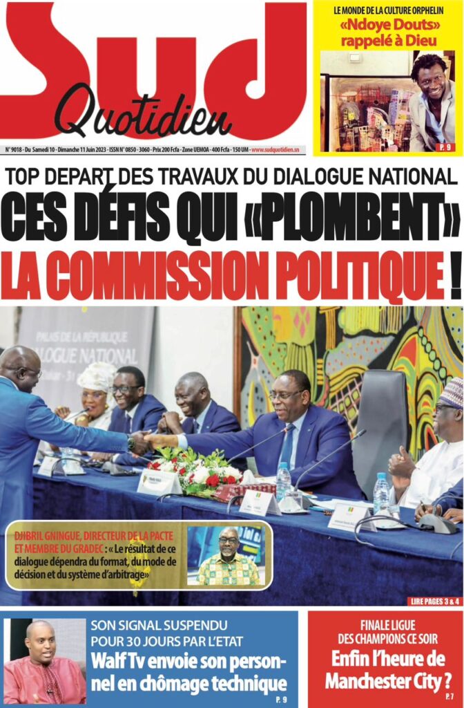 Parcourez sur senego la Une des journaux de ce samedi 10 juin 2023. Comme chaque jour la politique, le sport, les faits de société dominent largement ces Unes surtout dans un contexte de précampagne, entre autres.