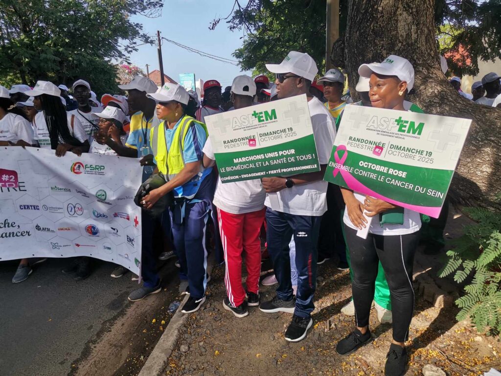 L’association sénégalaise des professionnels de l’équipement médical (ASPEM), la fédération sénégalaise de randonnée pédestre et leurs partenaires ont marché ce week end sous le thème: « le biomédicale en marche, un pas contre le cancer ». Côte à côte , banderoles et pancartes en main, les marcheurs ont sillonné sept (7) kilomètres dans les artères de la capitale pour sensibiliser contre le cancer.