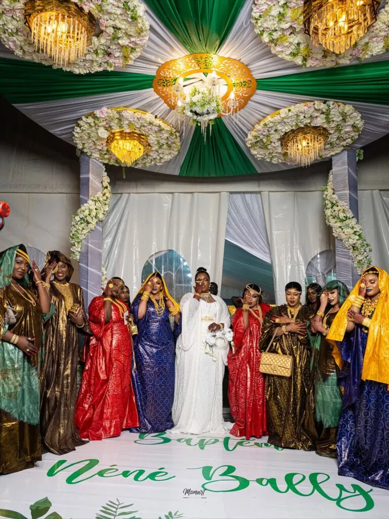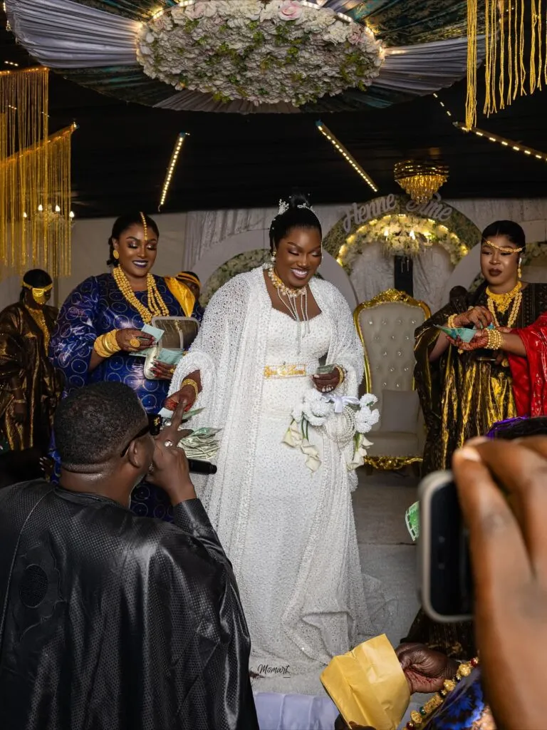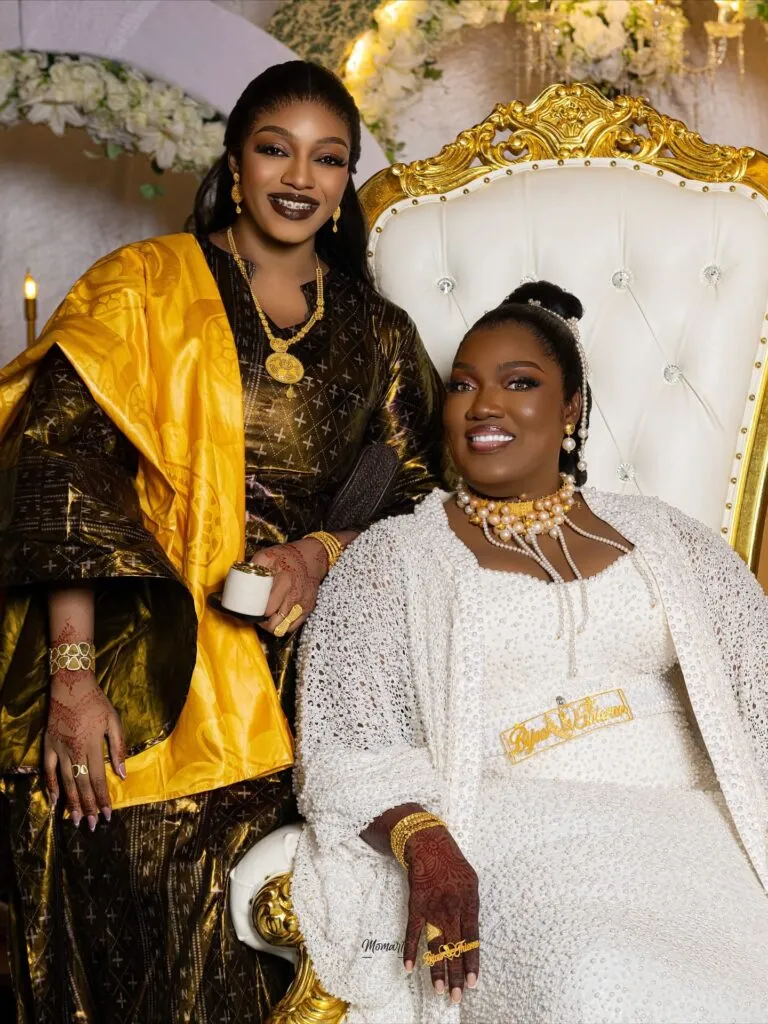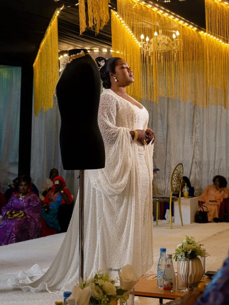 Sur les images partagées en ligne, Bijou Ngoné est apparue vêtue d’un boubou et parée de bijoux en or. Sa tenue a généré de nombreux commentaires admiratifs de la part des internautes.
