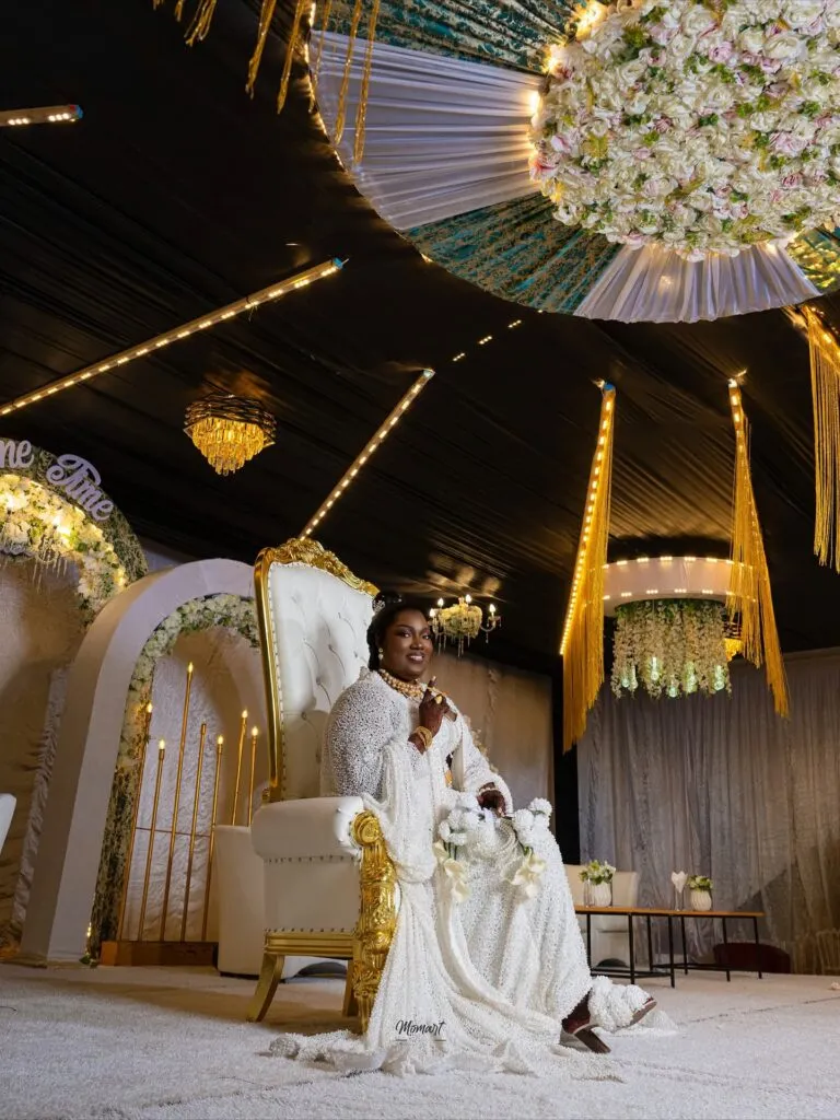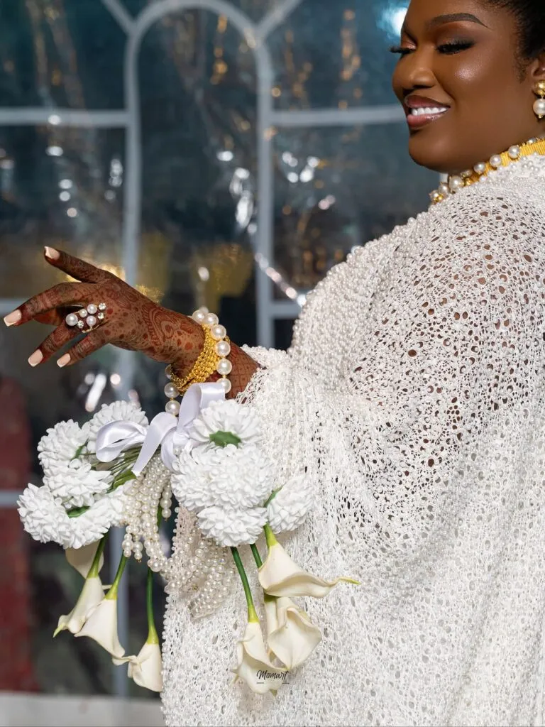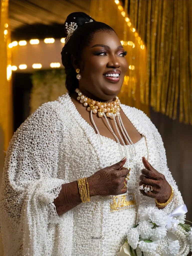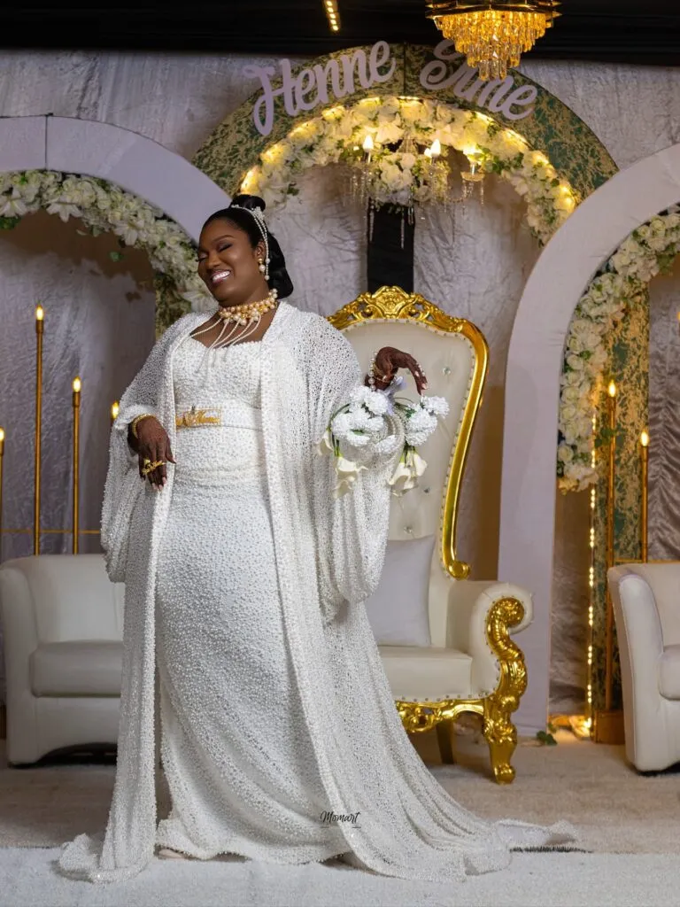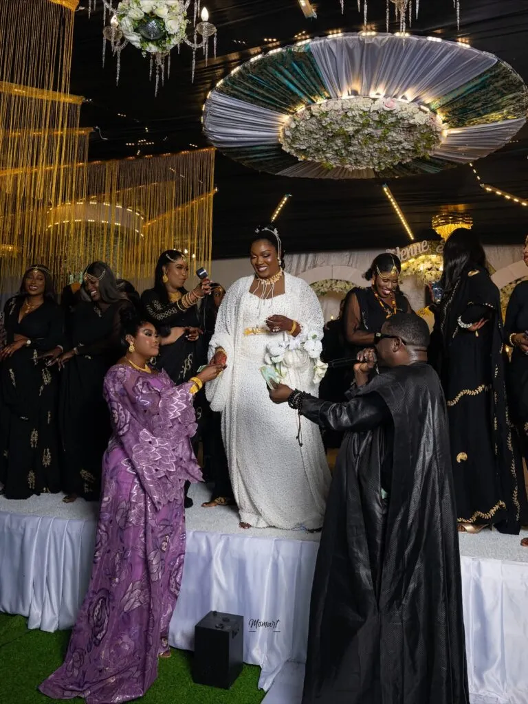 Sur les images partagées en ligne, Bijou Ngoné est apparue vêtue d’un boubou et parée de bijoux en or. Sa tenue a généré de nombreux commentaires admiratifs de la part des internautes.