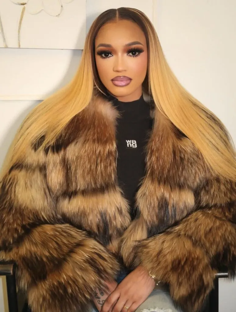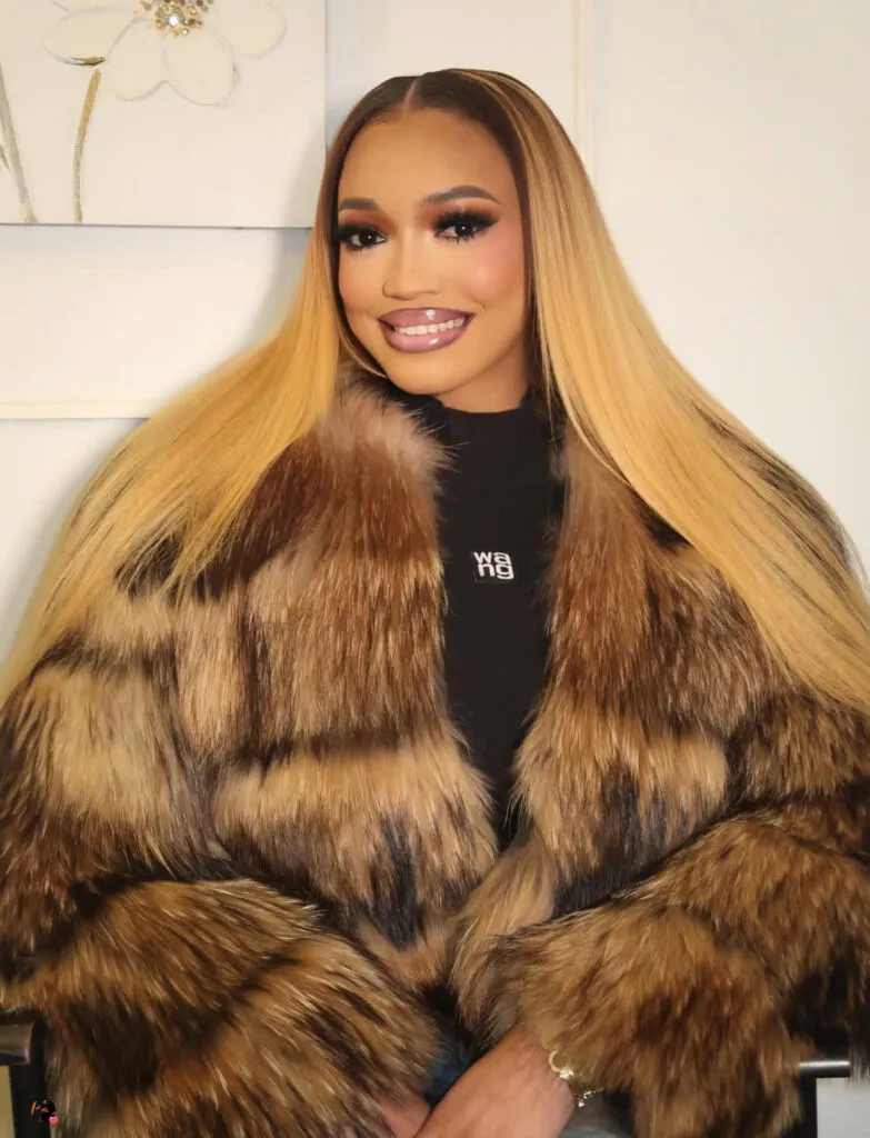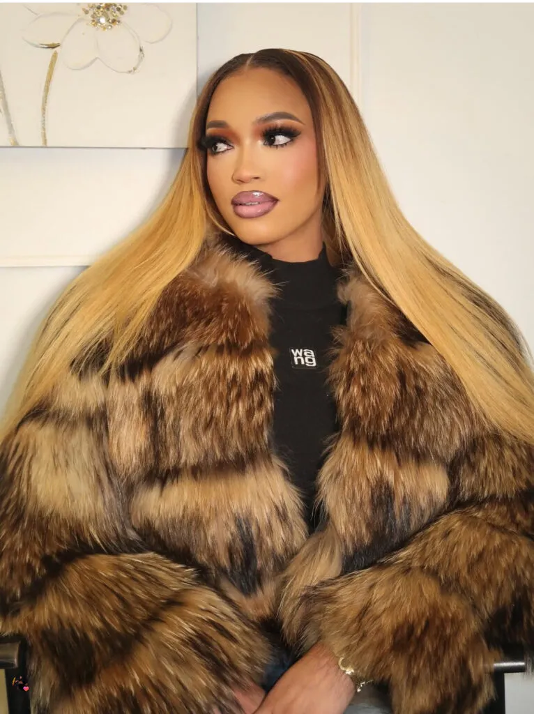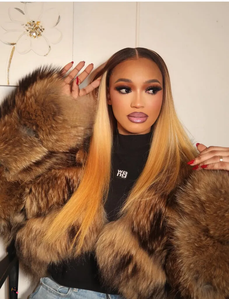 Selon nos confrères de Kawtef, le look de l’influenceuse est centré sur un manteau en fourrure aux teintes brun caramel. La publication décrit cette pièce comme conférant une « aura de luxe » à sa silhouette.