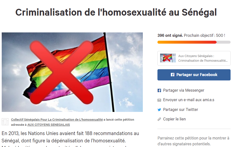 Nous demandons au peuple Sénégalais de signer cette pétition pour la criminalisation de l’homosexualité au Sénégal, comme l’ont réussi les activistes féminines sur la criminalisation du viol.