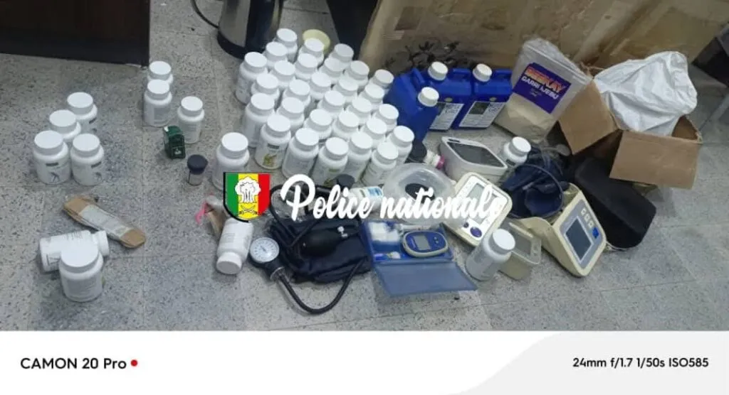 L’opération a été déclenchée suite à un renseignement indiquant qu’un groupe se livrait à des consultations médicales illicites et à la vente de produits sanitaires non certifiés sur la place du marché de la ville. Une équipe d’intervention, dépêchée sur les lieux, a procédé à l’arrestation d’un premier suspect qui utilisait un tensiomètre pour attirer des clients.