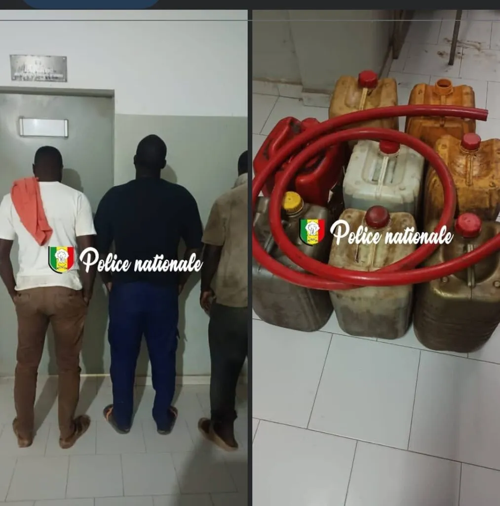 Selon nos informations, c’est lors d’une patrouille à Keur Mbaye Fall, à proximité de la gare du Train Express Régional (TER), que les agents du commissariat d’arrondissement ont surpris les trois suspects en flagrant délit. D’après le rapport de Kawtef, ils étaient en train d’extraire du gazole d’un camion non immatriculé à l’aide d’un tuyau. Le véhicule, qui venait de quitter le port pour se rendre à Diamniadio, a été la cible de cette opération.