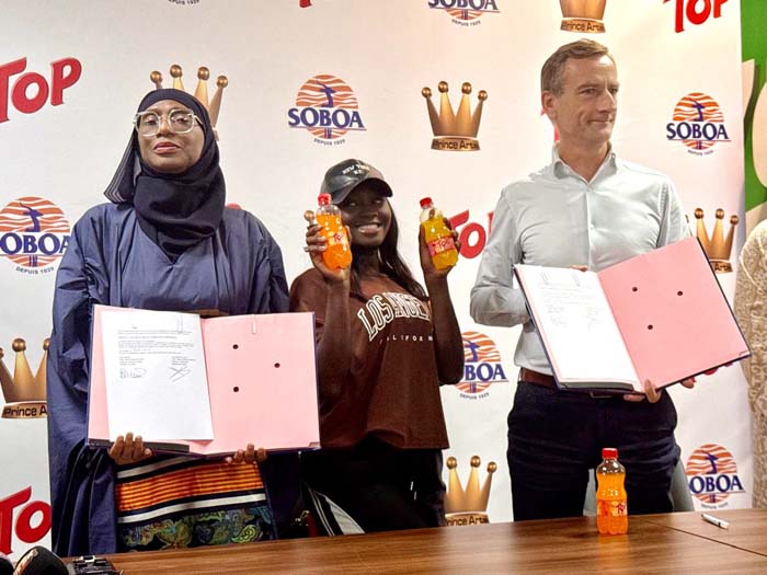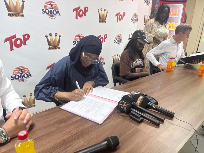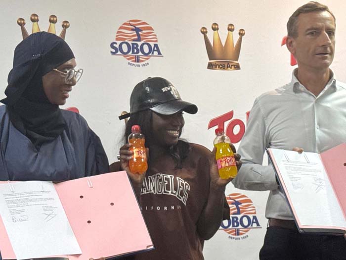 M. Paul-Robert BOUHIER, Directeur Général de la SOBOA se réjouit de « la rencontre des As dans leur domaine, la Soboa numéro 1 de la boisson et Prince Arts premier label sur le plan musical du pays ». M. BOUHIER explique que cette convention marque une étape importante dans le renouveau de l’image de la SOBOA, qui souhaite réaffirmer sa présence et sa capacité à se réinventer, en restant proche de ses consommateurs ». Il fait remarquer que « le choix de Ndakhté, jeune et pétillante est réfléchi avec les caractéristiques du produit TOP, comme pour dire qui se ressemble s’assemble »