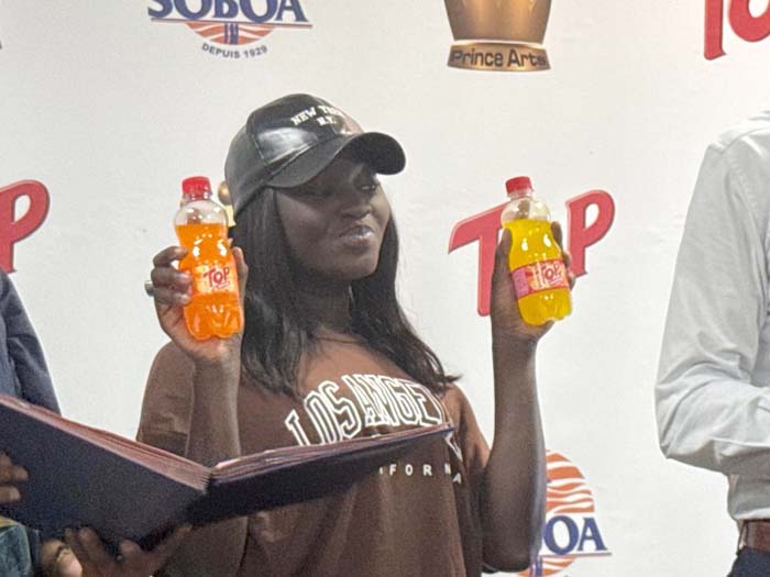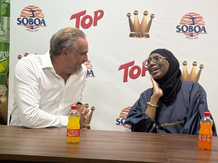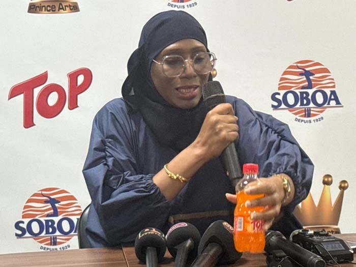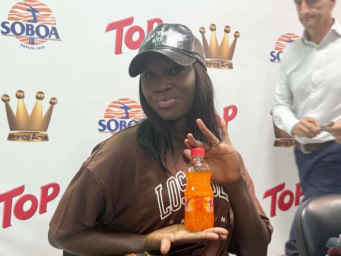 Mme Kouyaté Ngoné NDOUR, Directrice Générale Prince Arts, exprime sa fierté qu’une de ses artistes s’associe avec la marque TOP qui est une marque phare de la SOBOA, synonyme de plaisir et de partage.