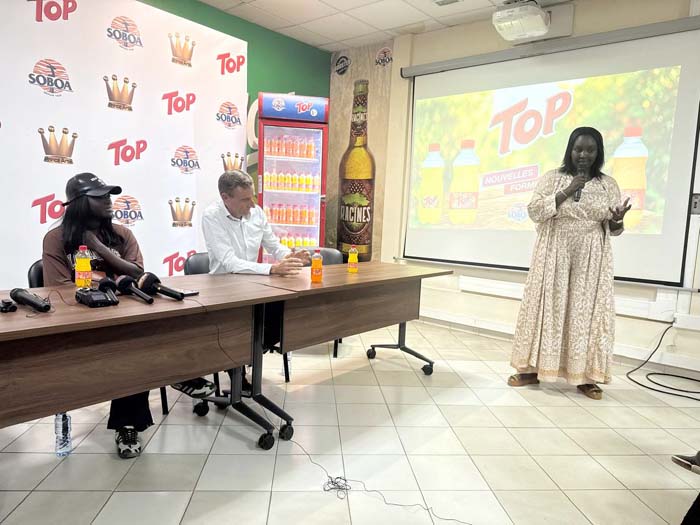 Mme Lam Rokhayatou Kane DIENG, responsable marketing réaffirme que TOP est une marque phare de la SOBOA. Elle s’adresse à une jeunesse optimiste, ouverte. Aujourd’hui, TOP entre dans une nouvelle ère avec l’élargissement de sa gamme, proposant désormais deux nouveaux parfums : TOP Tropical et TOP Grenadine. Ces nouveautés incarnent le souffle de fraîcheur et d’innovation que la marque souhaite apporter à son public.